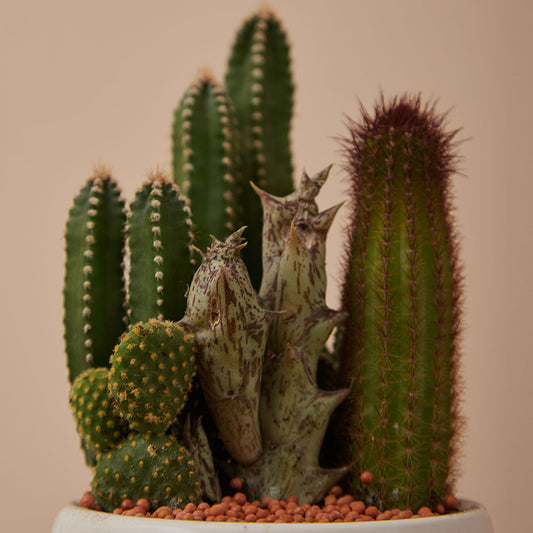 GREEN PLANT - 細盆仙人掌仙人球+多肉混搭 Cactus & Succulent Mix室內室外植物座枱盆栽家居綠植森林檯面雨林沙漠配簡約花盆
